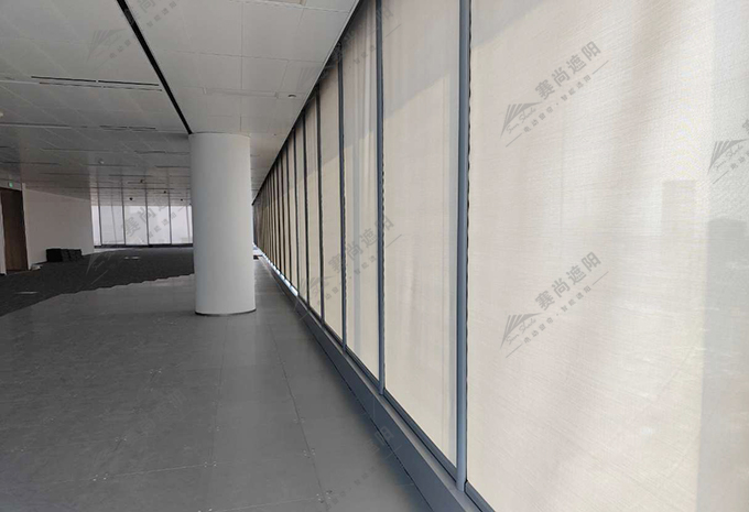 電動卷簾為電動遮陽窗簾的一種,遮陽材料使用織物面料,通過電機轉動卷管的轉動而上下運行,起到遮陽隔熱、陽光調節、裝飾美化的作用。由于此項目的結構和遮陽方案與以往項目大有不同,要做到幕墻遮陽一體化,拉鏈滑道與幕墻立柱一體化設計,可解決遮陽遮陽簾兩側漏光問題;同時在陽光面料上進行鍍鋁工藝,遮陽隔熱效果會更好,降低室內溫度,控制自然光亮度,保持一定的視覺清晰度,應用最為廣泛。