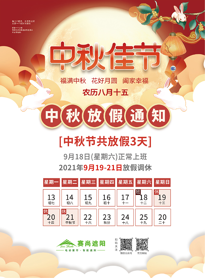 2021年9月19日至9月21日,中秋節(jié)放假調(diào)休三天,9月18日(星期六)上班。請各部門安排好自己手頭工作。