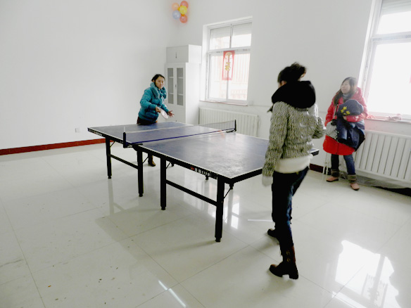采購黃姐與銷售小王激烈角逐女子乒乓球,靜若處子,動若脫兔。。