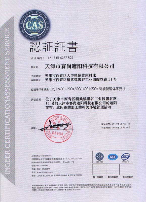 熱烈祝賀我公司順利通過ISO14001環境管理體系認證。