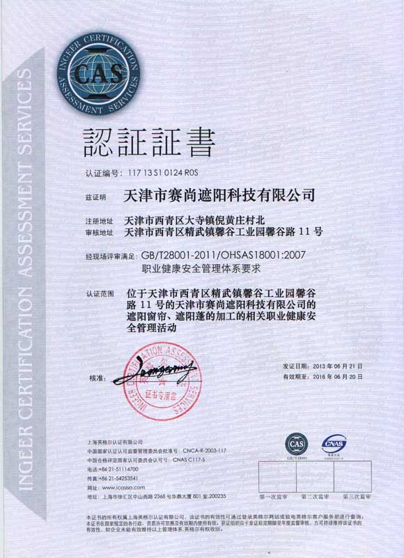 公司順利通過OHSAS18001職業(yè)健康安全管理體系認證,體現(xiàn)了公司健康安全管理的實力,增加了公司的綜合競爭力。同時使得公司的管理更加的走向正規(guī)化。