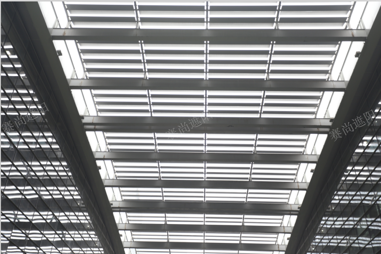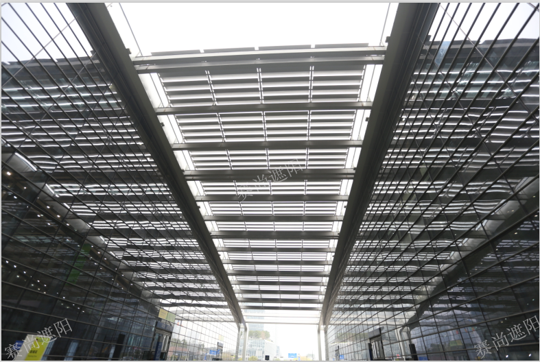 深圳會議展覽中心的遮陽工程,有其特殊的應(yīng)用要求,在遮陽項目的選擇過程中,不僅要求遮陽工程具有裝飾效果,更重要的是其遮陽功能。展廳中心要具有必須的亮度,但該地特有的氣候條件又不允許展場直接暴露于直射陽光下, 所以整個中心展廳的屋面采用遮陽百葉、金屬屋面和采光頂三者有機結(jié)合的外觀設(shè)計。屋面、側(cè)面均選擇使用400mm的梭形百葉作為遮陽百葉。