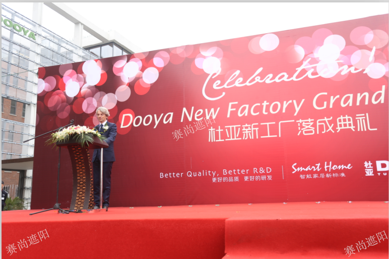 3月28日,寧波杜亞機電技術有限公司(以下簡稱杜亞)新工廠落成慶典在寧波隆重舉行。作為全球知名的智能家居與窗簾電機生產廠商,杜亞的此次新工廠落成慶典格外引人注目,大約3600人參加了此次活動,天津市賽尚遮陽科技有限公司總經理金鑫冶先生也受邀參加了此次慶典活動。