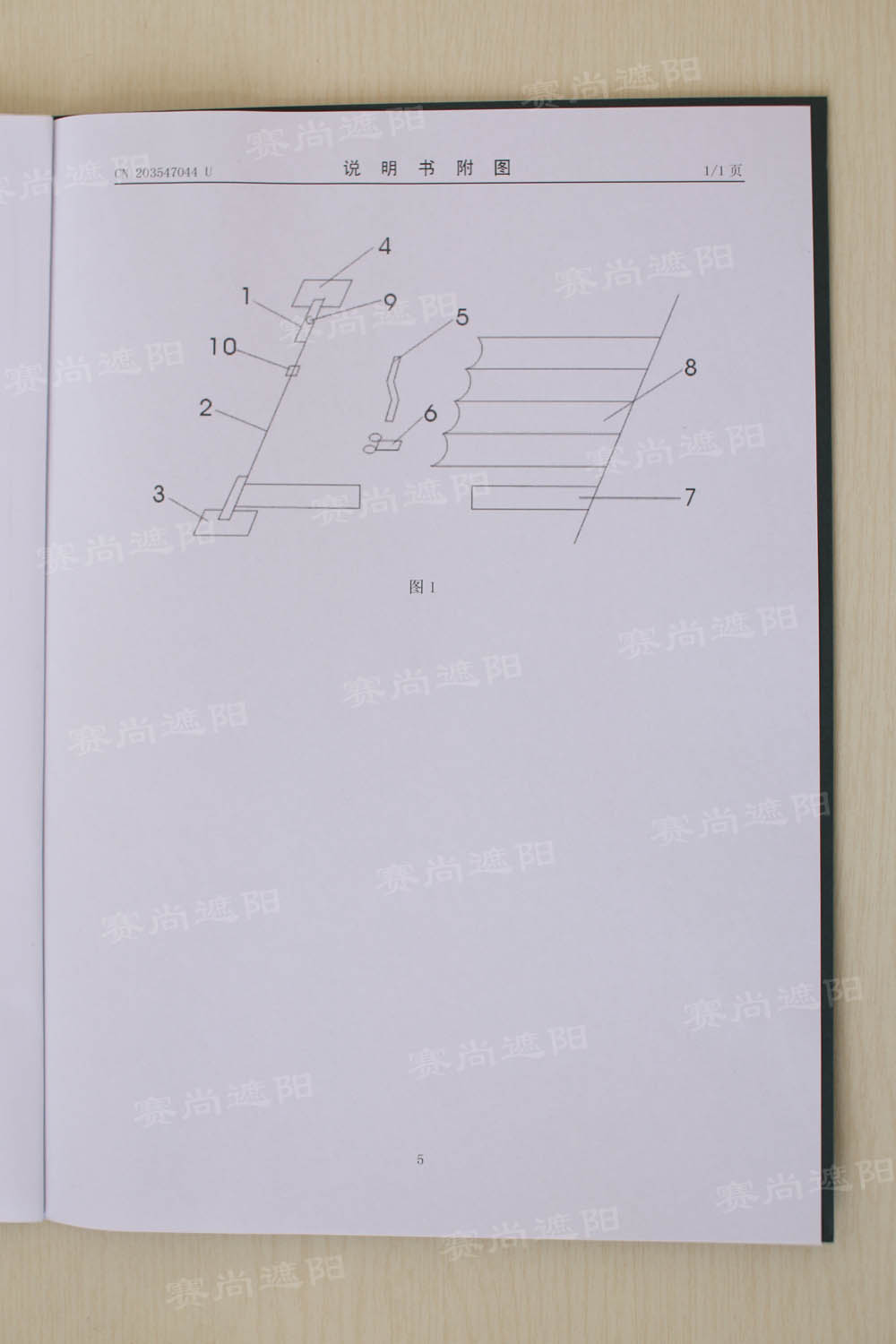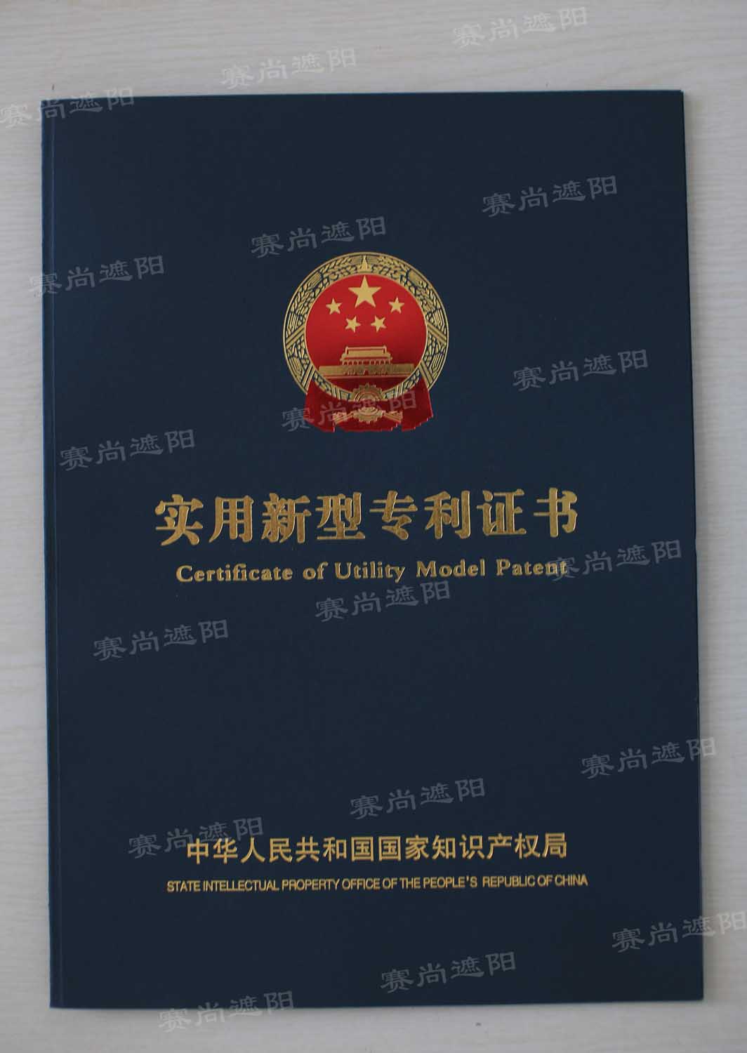 此項發明專利技術目前尚未應用于公司產品,新專利的取得不會對公司目前經營產生重大影響,但有利于發揮公司的自主知識產權優勢和完善知識產權保護體系,有利于增強公司的核心競爭力。天津市賽尚遮陽科技有限公司作為天津市創新型企業,在科技研發的道路上始終孜孜不倦地摸索著。多年來,企業以獨特的眼光、超前的意識,積極實施品牌戰略,努力樹立企業形象。展望未來,賽尚將一如既往地為您提供全方位的遮陽解決方案,您的舒適生活賽尚愿和您共同構建。