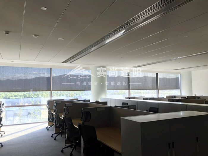 2.采用霸獅騰1%開孔率遮陽面料,在保證遮陽、透光、節能環保的前提下,具備良好的私密性;