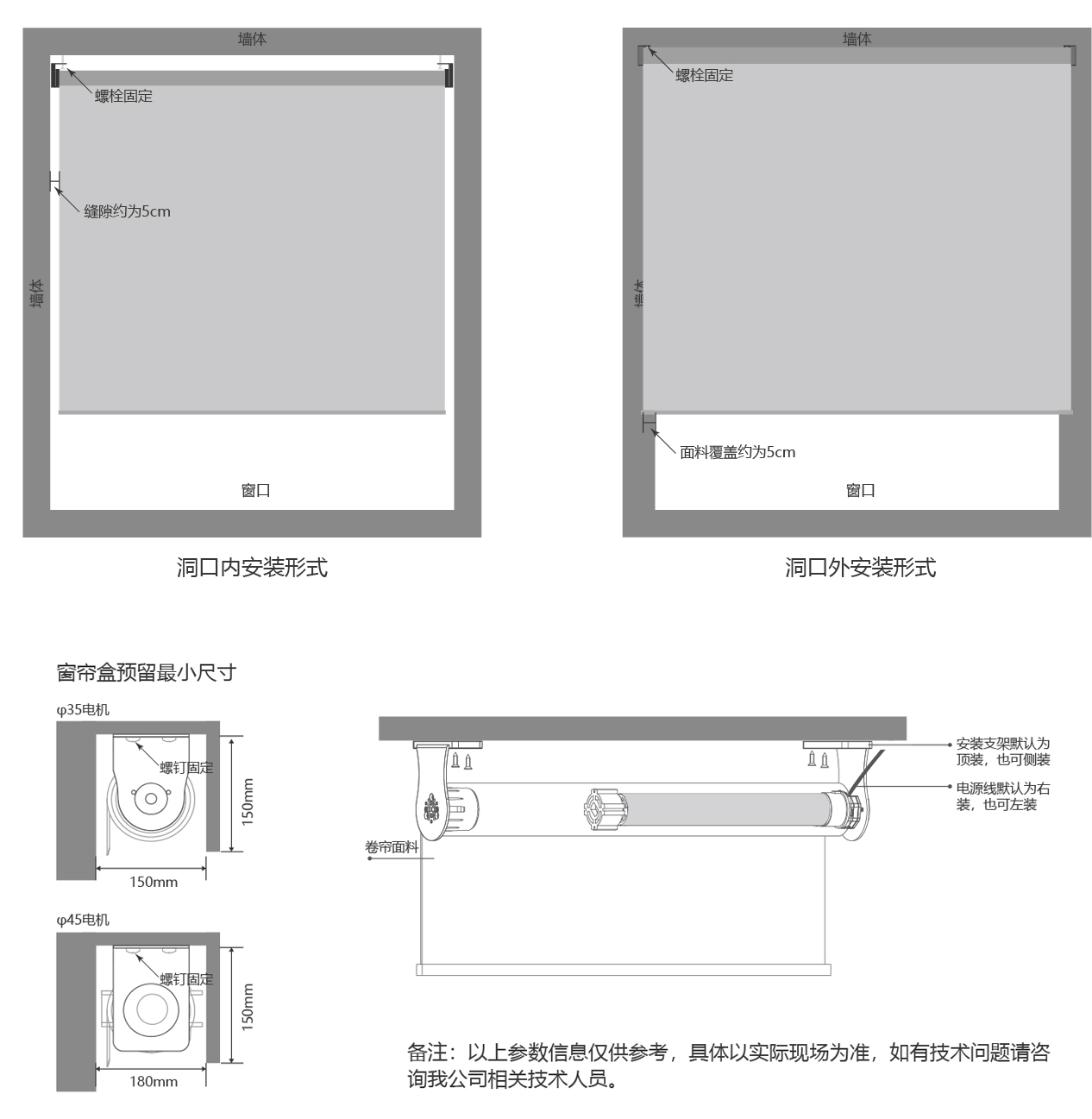 原因二:電動卷簾機構是采用專用管狀電機的,電機直接安裝在卷管內,避免了外界對電機的影響,增加了機構的可靠性;卷簾完全收起時,能很好的隱藏在卷管下方,既節省空間又美觀,適用于各種辦公場所、公寓建筑及大型的建筑上,是室內遮陽中備受歡迎的一款產品。