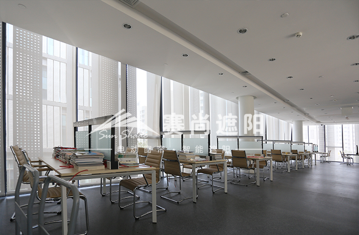 原因一:電動卷簾的面料顏色有多種,我們可以根據項目現場的設計風格及色調來選擇合適的面料顏色,選擇淺色系陽光面料,不會讓人們感覺特別的壓抑,既起到遮陽隔熱、又起到透景、美化幕墻的作用。