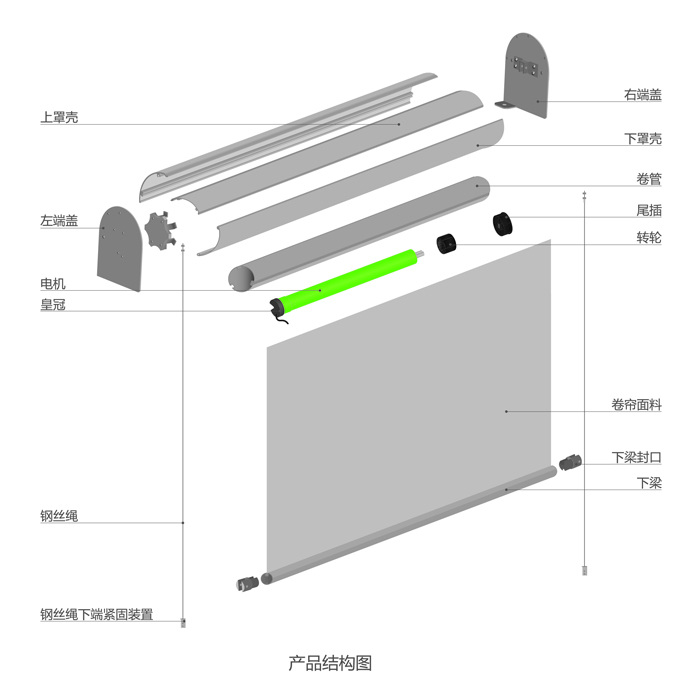 (2)添加導向鋼絲配件可使簾子在運行過程中面料不會發生跑偏的現象;