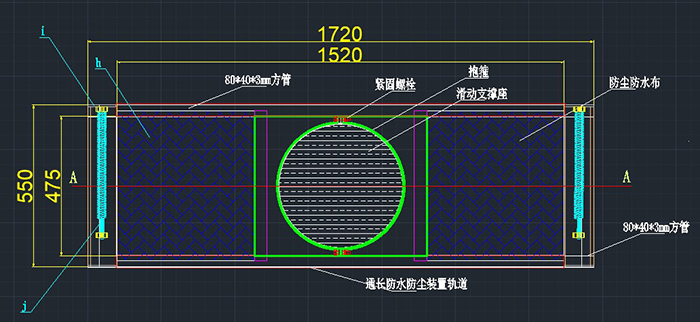 3.固定防塵罩軌道并測量防塵罩盒預(yù)留尺寸及抱箍的安裝設(shè)計(jì)。