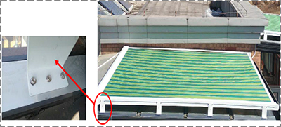 3)最后在鋁方管周圍注滿結構膠,完全固定在玻璃頂上,之后在打上安裝碼,方便與遮陽簾固定在一起。