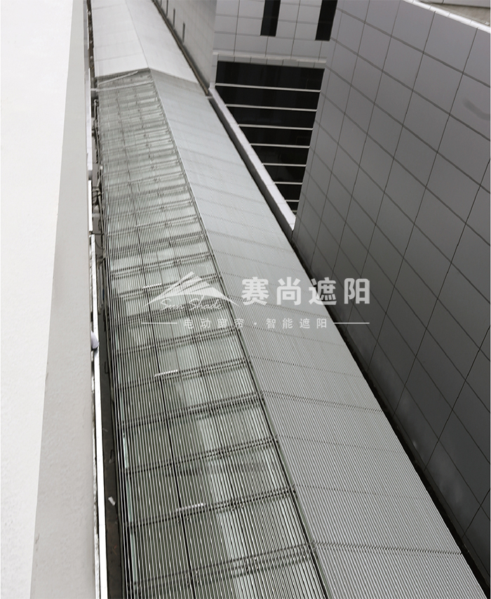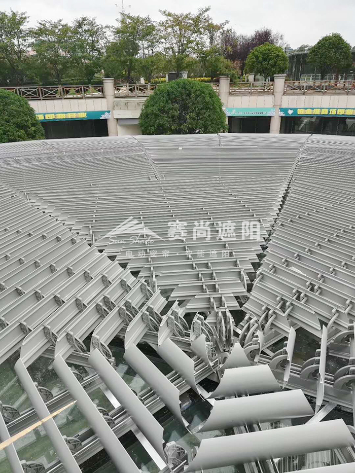 歐式百葉可適用于多種形狀的采光頂,圓形、長方形、正方形或梯形等多種不規則的圖形,使遮陽產品與建筑物很完美的結合在一起,既起到遮陽調光又能起到美化幕墻的作用。