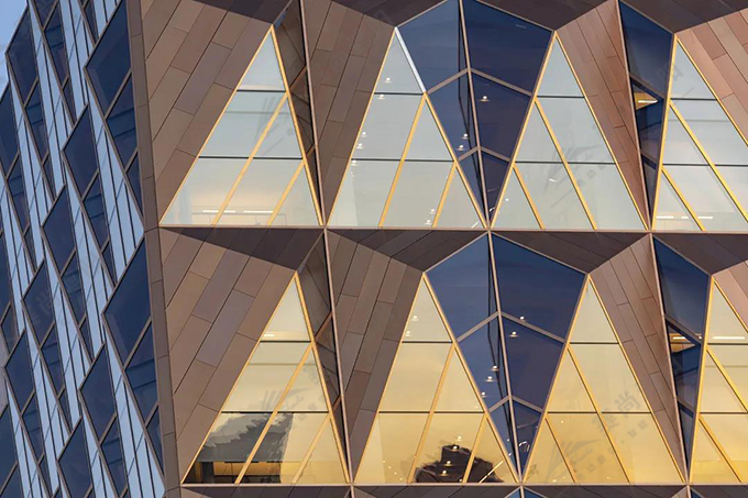 RCC(Russian Copper Company)是世界領先的銅生產商之一,設計中采用的三角形形式便是從銅的化學結構中獲取靈感。建筑的冠部結合了RCC的新標識,后者的設計同樣也受到了建筑的啟發而設計遮陽方案。