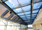 天津銀河地下商業廣場站頂部遮陽,采用的是FSS電動天棚簾采光頂下部做遮陽