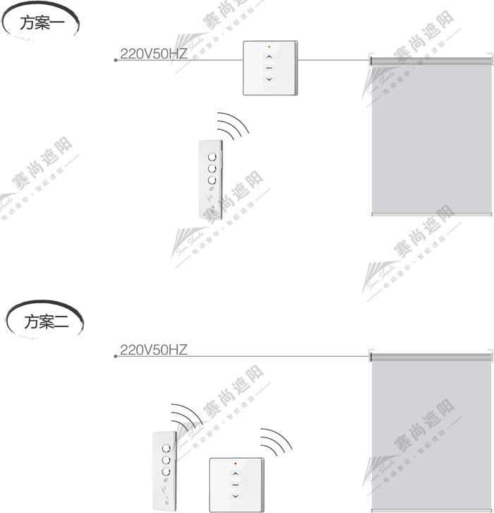 遮陽產品的單獨控制相對簡單,可以采用兩種方式。一是可選擇外置電機配合本地面板、遙控器的方式即可實現。二是采用內置電機配合遙控器或帶無線接收功能的本地面板即可實現對于遮陽產品的單獨控制。